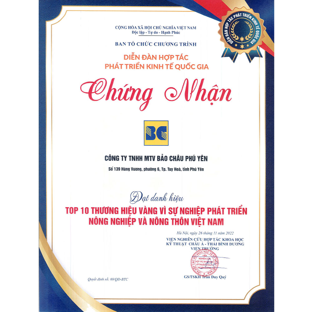 Hơn 20 năm hình thành và phát triển, hơn 10 năm kinh nghiệm sản xuất dăm gỗ và 5 năm kinh nghiệm sản xuất viên nén. Bảo Châu Phú Yên với khát vọng tiên phong cùng chiến lược xây dựng doanh nghiệp phát triển bền vững theo chiêu chuẩn ESG (Môi trường, Xã hội và Quản trị) để trở thành tập đoàn vững mạnh trong lĩnh vực sản xuất lâm nghiệp, nâng tầm thương hiệu Việt Nam trên thị trường quốc tế.