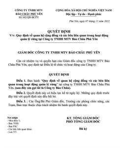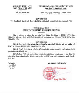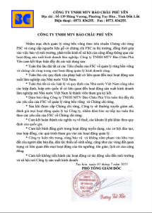 1. Cam kết của Công ty TNHH MTV Bảo Châu Phú Yên về thực hiện các tiêu chuẩn FSC